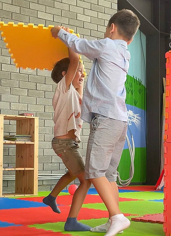Взрослым и детям во время нахождения в игровой комнате необходимо быть в носках или сменной обуви.