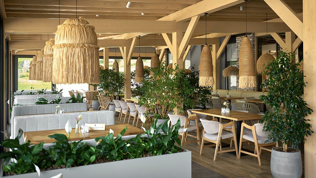 Новая уединенная веранда в светлых тонах и панорамными видами, идеально подойдет для частного события и семейного ужина. Веранда оснащена LED экраном и доступна круглый год.