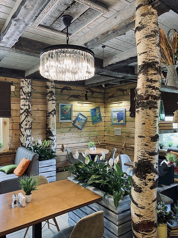 На территории – русская баня на дровах с террасой, BBQ-зоной и услугой парения. Ценители русской кухни и локальных специалитетов по достоинству оценят ресторан-музей «Деревня», работающий по концепции «from farm to table». В меню – фермерские продукты, блюда из марала, муксуна и хариуса, щи и другие блюда русской кухни из натуральных ингредиентов.