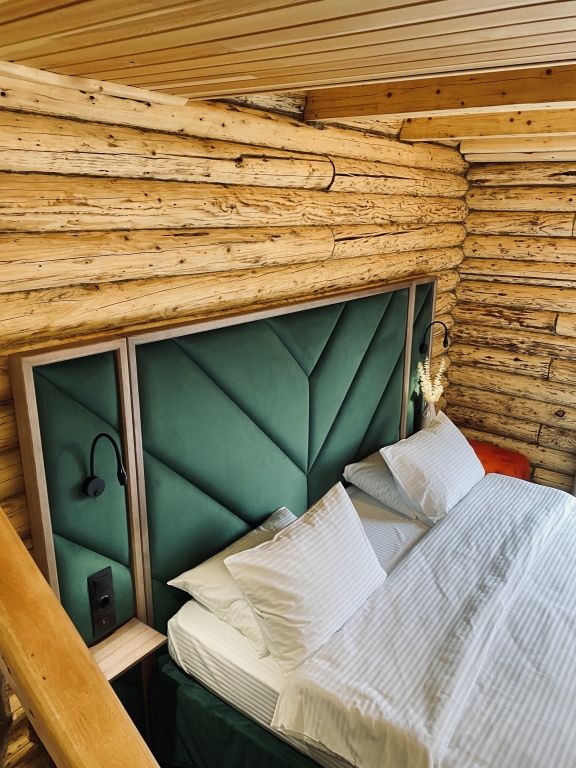 Уютная двухэтажная вилла из массива натурального дерева с террасой и живописным видом на горы и парк маралов. Дизайн интерьера выполнен в классическом стиле русской избы с современными элементами декора. Дом оснащен всем необходимым для комфортного проживания семьи или компании друзей: две спальни с одной двуспальной и двумя односпальными кроватями с ортопедическими матрасами, мягким белоснежным бельем, кондиционером, Smart TV, блэкаут шторами, чайно-кофейной зоной и функциональной ванной комнатой. Всем гостям предоставляется услуга персонального батлера, который будет на связи в круглосуточном режиме и выполнит любые просьбы.