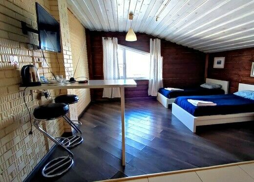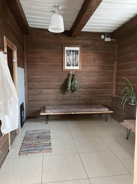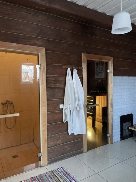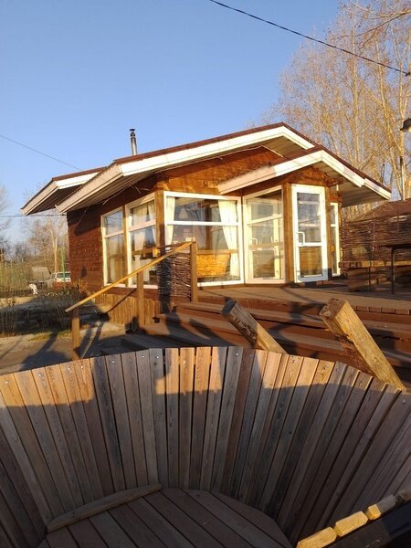В доме: 4 спальных места, теплые полы, столовые зоны, русская баня. Парилка —1000 ₽ за 3 часа, чан — 4000 ₽ / 3 часа.