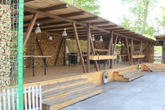 На территории зоны барбекю с мангалами, летние беседки, лодочные причалы, террасы. Может быть организована доставка еды. Есть парковка и Wi-Fi.