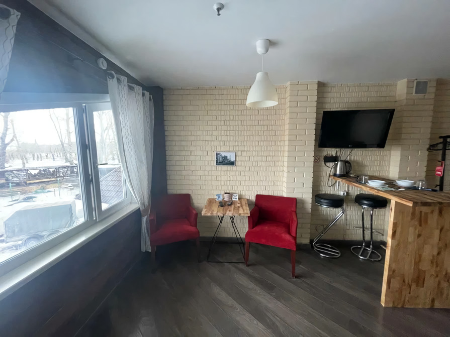 Три двухместных номера с видом на реку Обь. Завтраки включены. Есть бесплатный wi-fi.