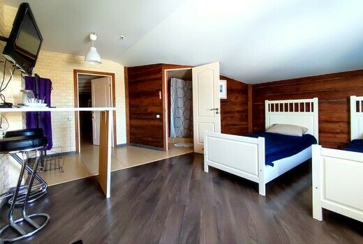 Два одинаковых двухместных номера. Отдельный вход. Пол с подогревом. Завтраки включены. Есть бесплатный wi-fi. Услуги прачки.