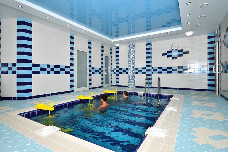 Читать полностьюНесмотря на то, что закрытый бассейн в санатории «Катунь» – теплый, отдыхающие любят погреться после плавания. Для этого есть несколько зон:
