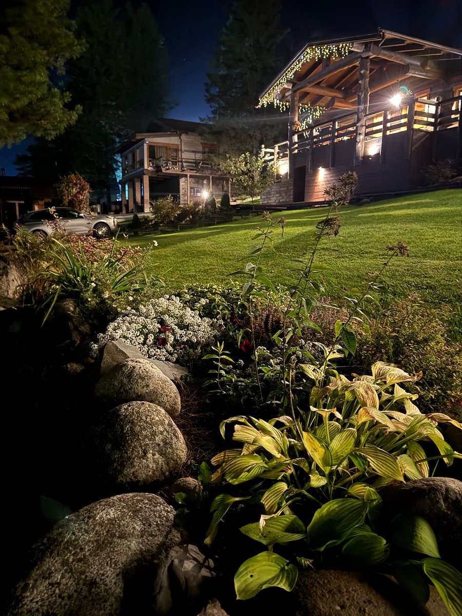 Для проживания представлены отдельно стоящие, стильные 1-этажные дома-шале, собранные из мощных кедровых брёвен. Дома оснащены всем необходимым для отдыха и рассчитаны для приема 6-8 человек. Гости могут готовить пищу на оборудованной кухне, есть все кухонные принадлежности и бытовая техника. Бесплатный Wi-fi в каждом доме.
