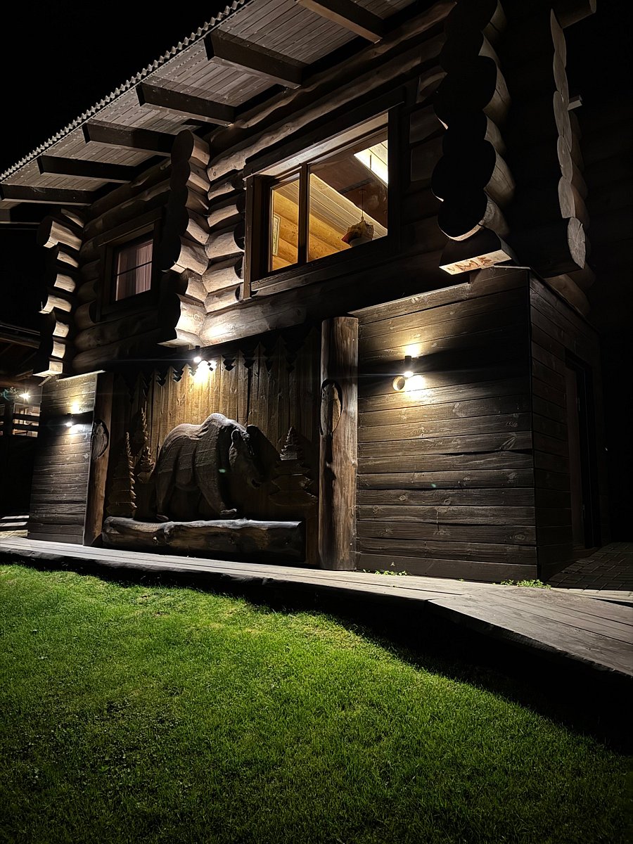 На территории так же имеется кедровая баня с выходом к озеру. Баня входит в перечень дополнительных услуг, в стоимость входит посещение бани и банные принадлежности.