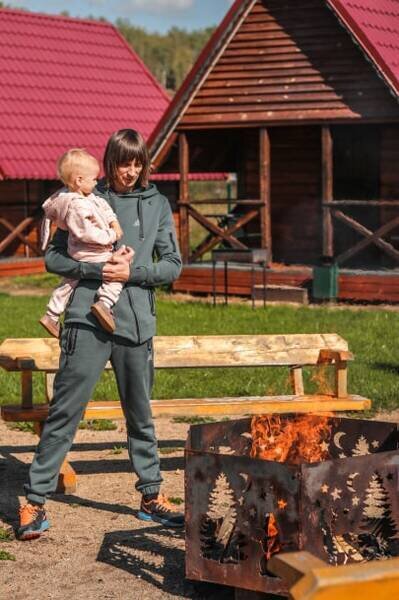 На территории можно попариться в настоящей русской бане, пожарить блюда на мангале и активно провести время со своей семьей или компанией друзей. Вечером можно насладиться видом на звездное небо, сидя у костра и слушая, как приятно потрескивают дрова.