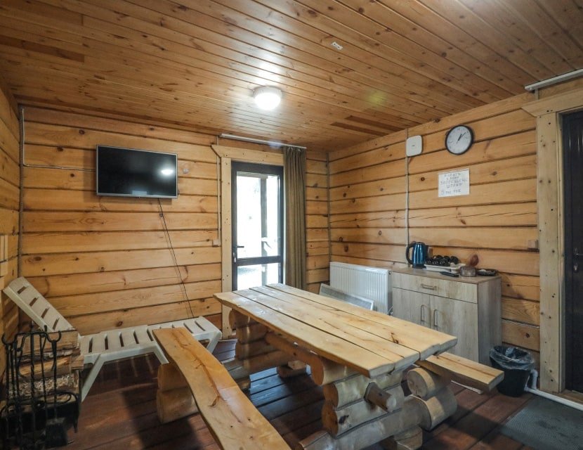 Инфраструктура: зона отдыха, березовые веникиРасположение: выход к рекеМинимальное время аренды: 2 часаВремя работы: от с 9.00 до 24.00На территории комплекса «Кедровый берег» расположена настоящая русская баня. После парения вениками, вы можете окунуться в реку Устюба и родиться заново! Приятным бонусом крепкий и здоровый сон. В бане есть комната отдыха с лежаком, чайником и телевизором, а также своя терраса.