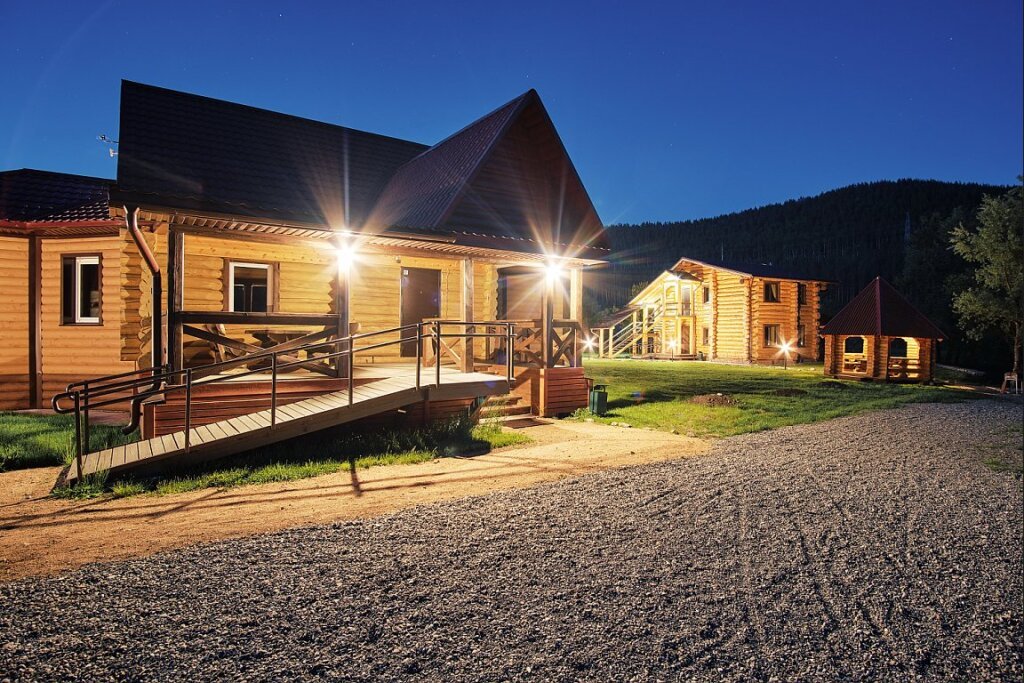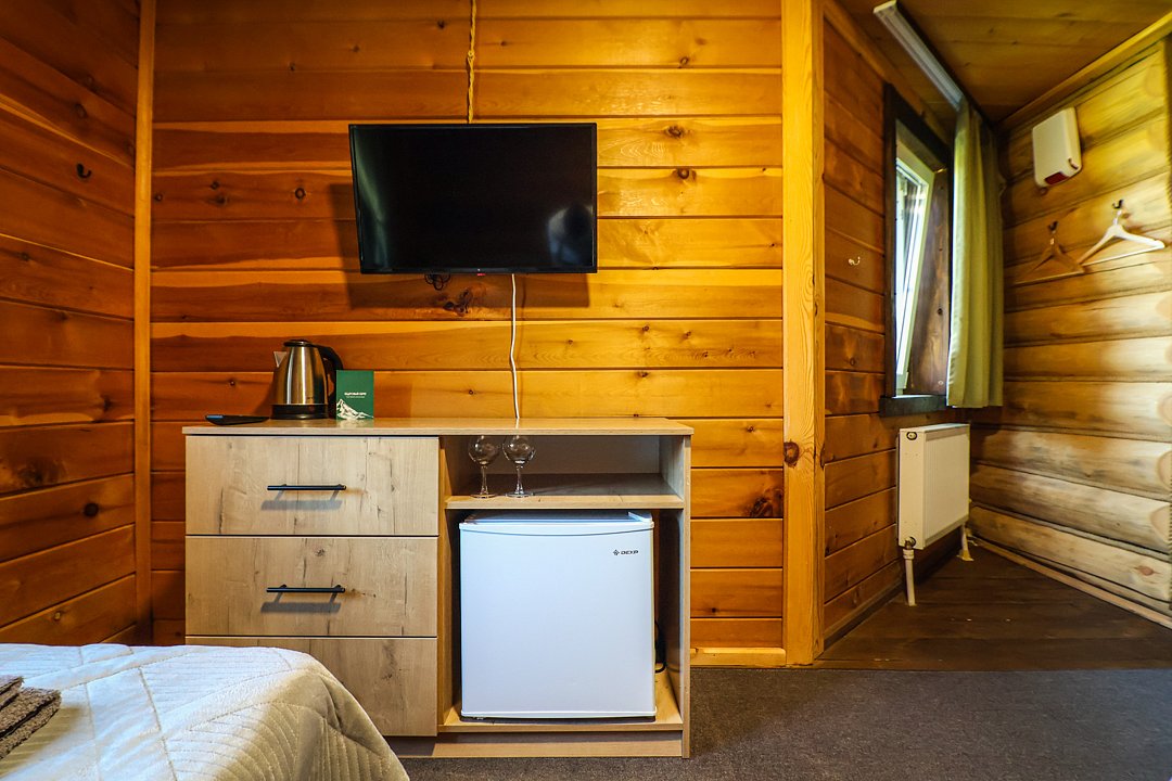 Номерной фонд гостевого комплекса — это уютные коттеджи и летние домики, оборудованные всем необходимым для комфортного отдыха. Коттеджи выполнены из кедра, сосны и осины ручной рубки, с применением высококачественных германских масел без содержания вредных для здоровья веществ.