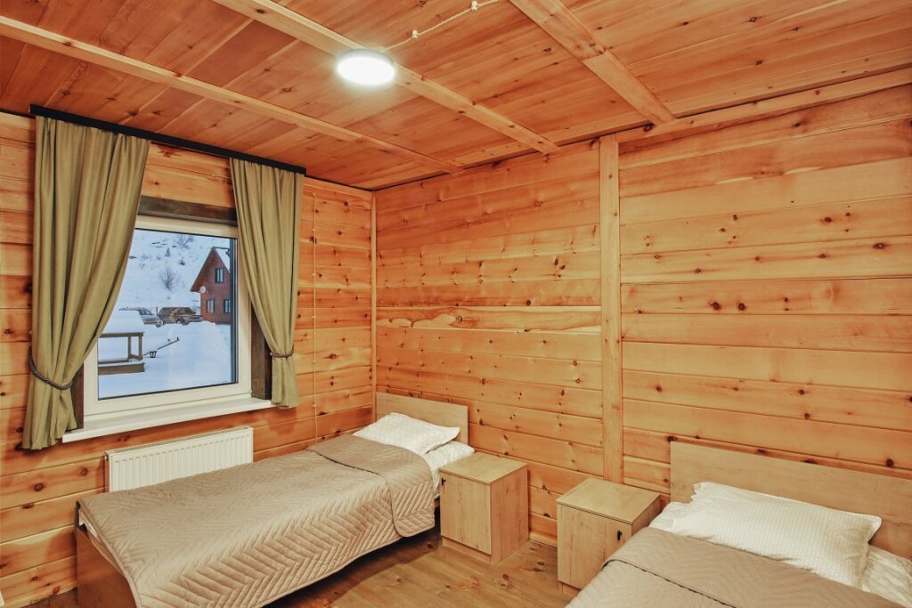 Номер категории «Комфорт» - двухкомнатный номер: спальня с двумя раздельными кроватями и кухня-гостиная с 2-местным диваном. Общая площадь номера 40м², подходит для 2-4 человек. Расположен на 1 этаже в коттедже на несколько номеров, санузел в номере. Есть возможность забронировать весь коттедж целиком.