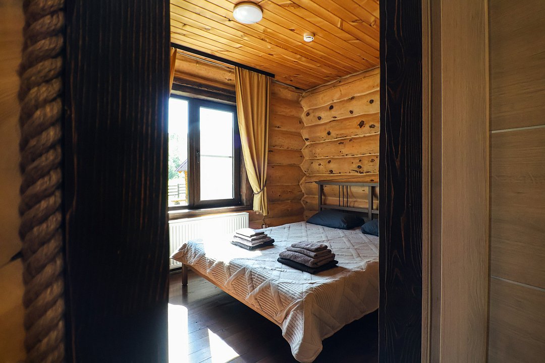 2-й этаж коттеджа «Кедровый терем». В коттедже кухня, гостиная, две спальни и два санузла. Отдельный вход на второй этаж. Общая площадь - 90м², подходит для семьи или компании до 8 человек.