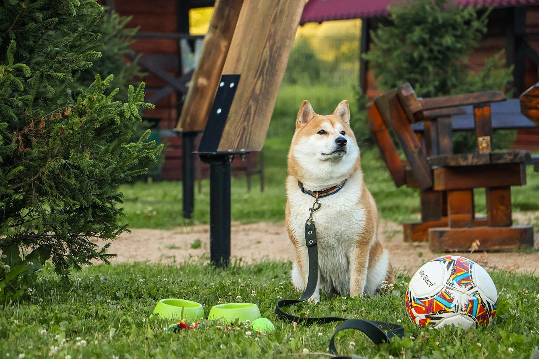 Выгул животных нужно осуществлять исключительно ЗА территорией комплекса. Собака должна быть постоянно на привязи, на коротком поводке или в клетке, независимо от размера/породы и нахождения на месте отдыха. За животным обязательно нужно все убирать.