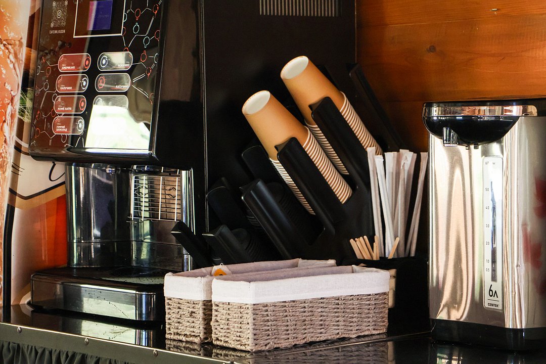 - две односпальные кровати; - две прикроватные тумбы; - комод; - барный холодильник; - электрочайник; - телевизор 32".