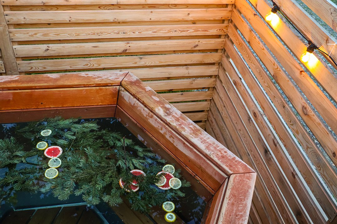 Добавляйте в банный чан аромамасла, ароматные травы, еловые ветви или цветы. Растворитесь в лёгкости и ощутите полное расслабление в гармонии с природой.