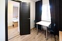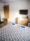 В номере: - Двуспальная кровать; - Санузел с душевой комнатой; - Комод; - Телевизор; - Кухня; - Посуда; - Холодильник; - Микроволновая печь; - Стол, два стула; - Прихожая.