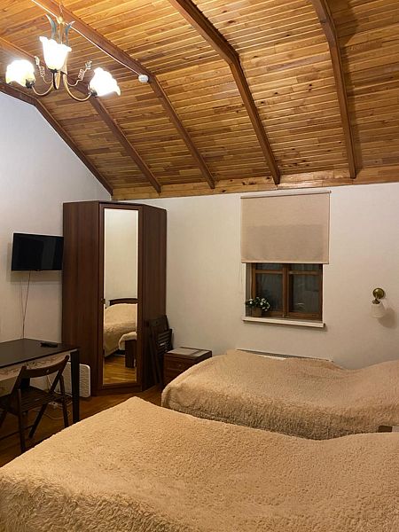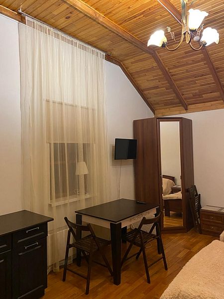 Двухкомнатный номер с отдельным входом на 2-ом этаже круглогодичного дома. При бронировании на 8 человек предоставляется 3 спальня (с удобствами) и оплачивается дополнительно.