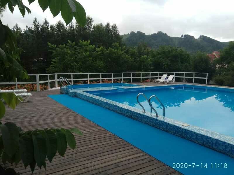 Семейный отдыхДостоинстваОчень довольны проживанием на базе . У нас с мужем был симпатичный номер с современной мебелью . Неподалеку от домика бассейн, беседочка . Если возникали вопросы , то обращались к администратору Елене , которая с вниманием реагировала на все просьбы . Видно , что клиентами дорожат и делают все необходимое для обеспечения комфортных условий . Из развлечений запомнились рыбалка , пешие прогулки к озеру Ая , отдых на пляже и потрясающий сплав по реке ! Бесподобно!