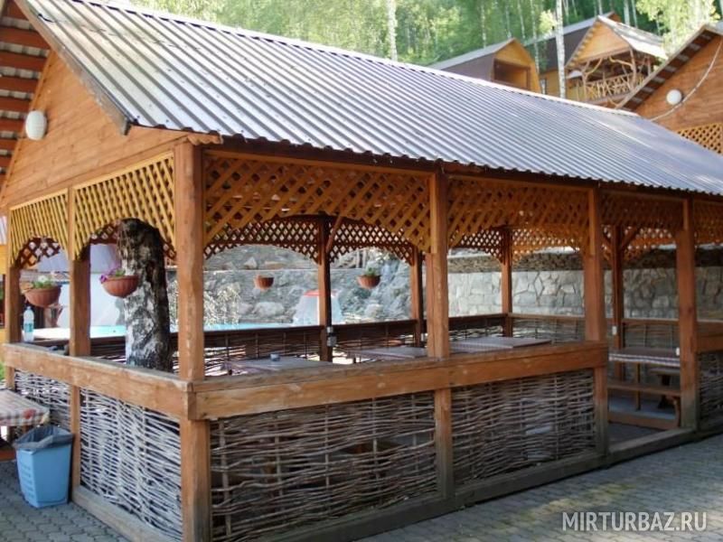 На территории базы к Вашим услугам уютные панорамные беседки, кафе в котором Вас накормят вкусными и изысканными блюдами, бар с прохладительными напитками возле бассейна с водопадами. Просторная Русская баня с жаркой парной, ароматными вениками и уникальными лечебными свойствами позволит принять водные процедуры с большим комфортом. Если Вы желаете приготовить и отведать на природе шашлык или плов, можете воспользоваться мангалами и расположиться в удобных панорамных беседках расположенных на склоне горы.