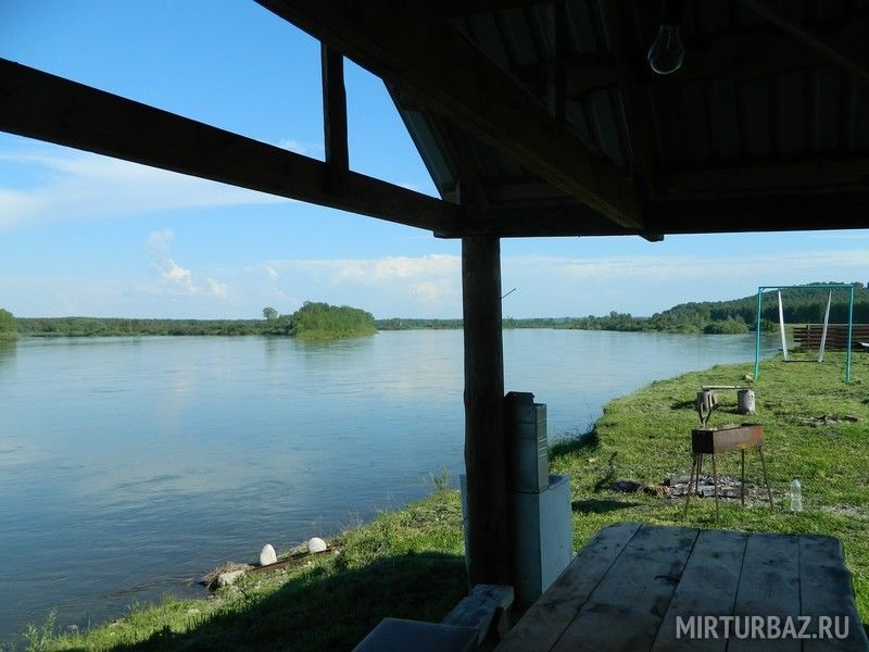 В доме есть горячая и холодная вода, холодильник, телевизор, музыкальный центр. На первом этаже гостиная - на втором две спальни. Баня русская с парилкой, мойкой и комнатой отдыха, отделана сосной и кедром. Имеется беседка с большим столом, мангал, коптильня. Рыбакам будет особенно приятно половить прямо под берегом хариуса, есть таймень, налим, щука, окунь, чебак, елец и т.д. Имеется моторная лодка, выезд на рыбалку.