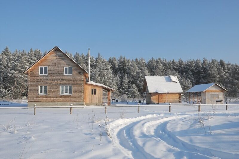 Вас ожидает комфортабельное проживание в двухэтажном деревянном доме, который отличается надежностью, высоким качеством и сухостью. На первом этаже расположены две отдельные комнаты на 3 и 4 человека, просторный холл, где установлен обеденный стол на 12 персон, кухонная зона и умывальник с холодной водой. Дом освещается солнечными батареями. На втором этаже находится просторное помещение со спальными местами (студия), которое в особенности нравится детям благодаря прекрасному виду на реку и лес.