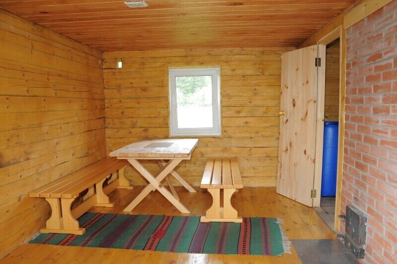В просторной комнате отдыха, в которой расположен стол на 6-8 персон, установлена дополнительная печь, придающая тепло и уют в зимнее время. Здесь Вы сможете отлично провести время с друзьями, попить чай или другие напитки, поиграть в карты и поговорить по душам.