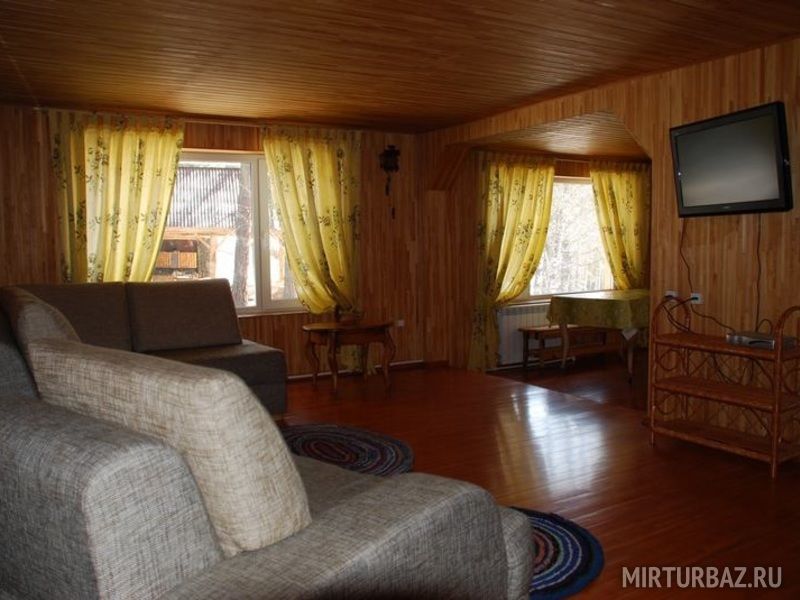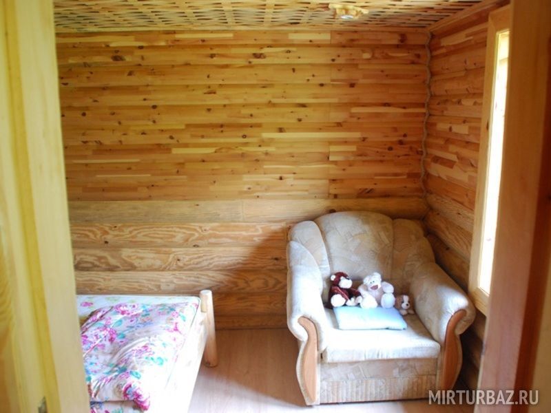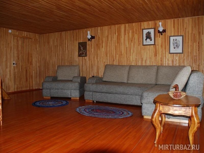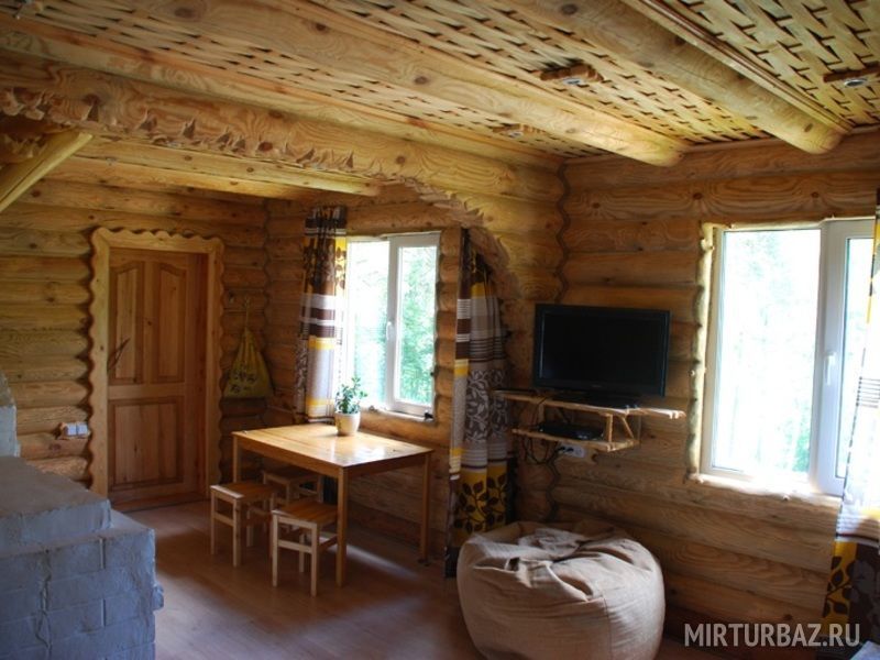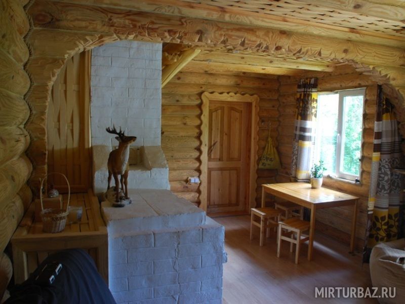 Деревянный двухэтажный дом, построен в 2015 году. На втором этаже находятся две спальни с большими двухспальными кроватями и кресло-кроватями. На первом этаже расположены: кухня , туалет, зона отдыха с мягкой мебелью , телевизором и русской печью. Рядом с домом находится беседка с печью на которой можно готовить шашлык, блюда в казане и чугунке.