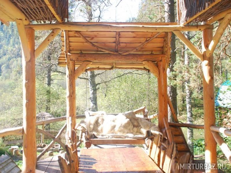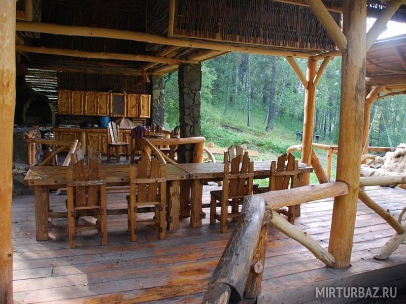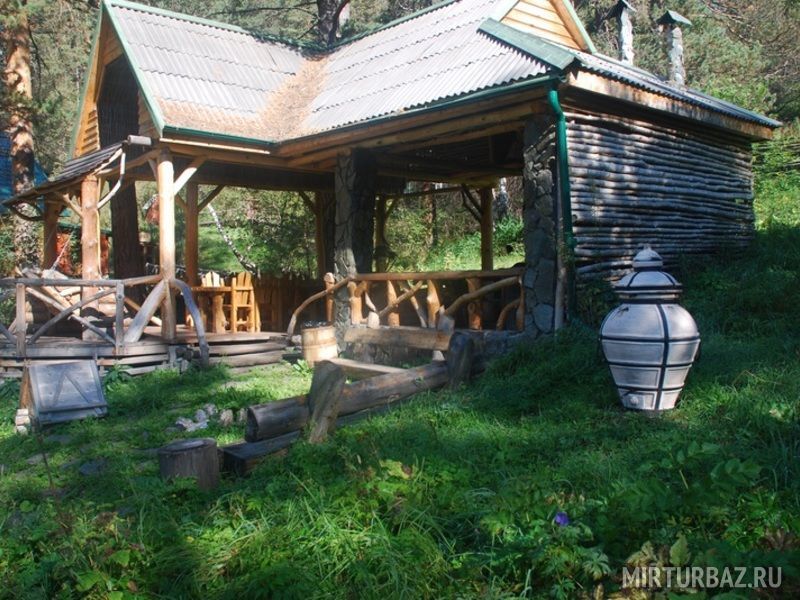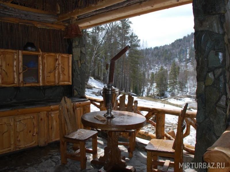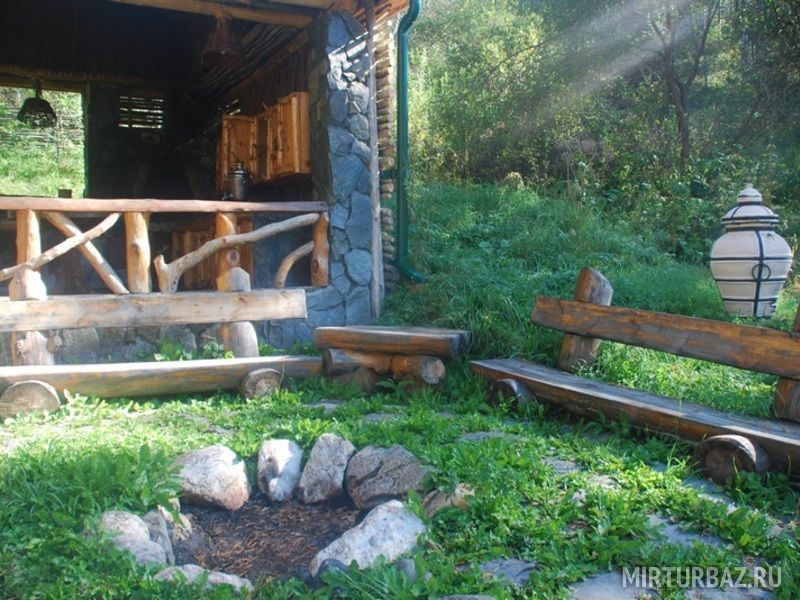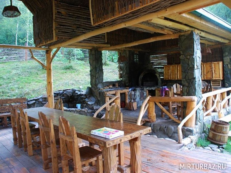 Зона отдыха на улице оборудована печами под казан, мангал. Имеется самовар в котором удобно заваривать чай из ароматных горных трав.
