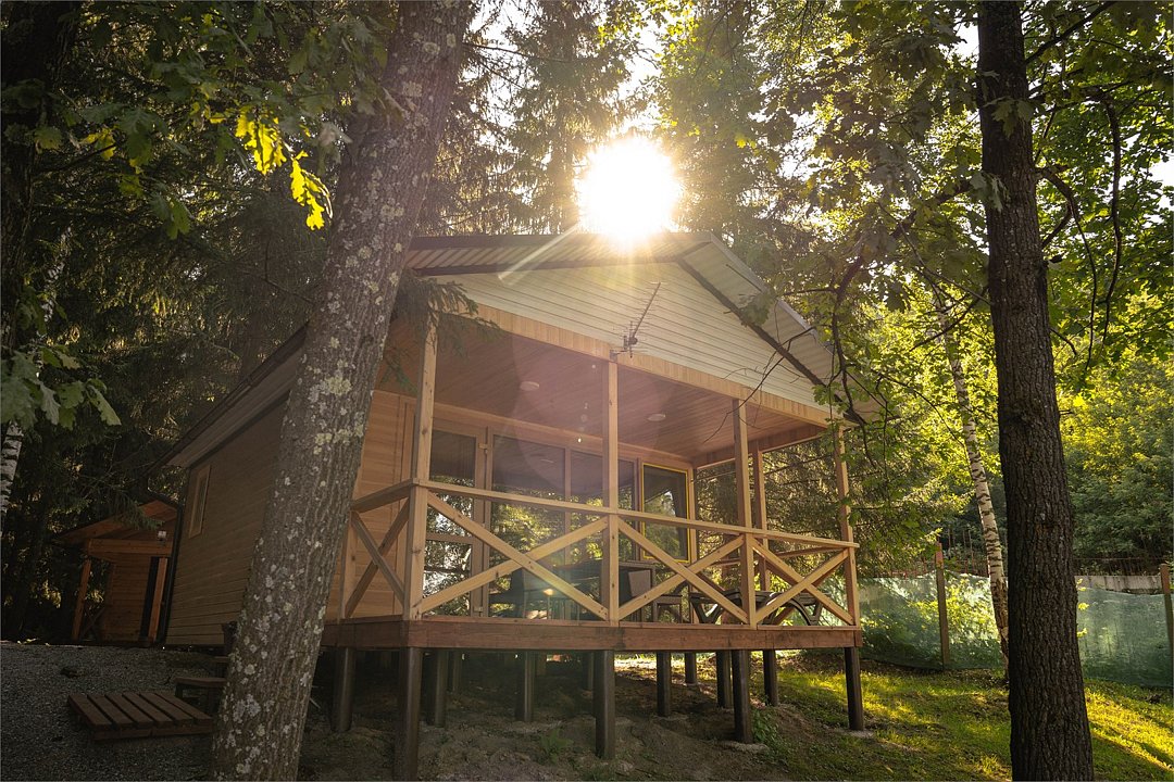 телевизор, фен, микроволновая печь, обогреватель, душевая кабина, санузел, водонагреватель, халаты, банные полотенца, тапочки, гигиенические средства, двуспальная кровать, диван, стулья, гардеробная, две комнаты, чайный набор, унитаз, раковина, вид на реку, стол, мини-холодильник, москитная сетка, чайная станция, вешалки-плечики, веранда, мыло, без питомцевВ домике