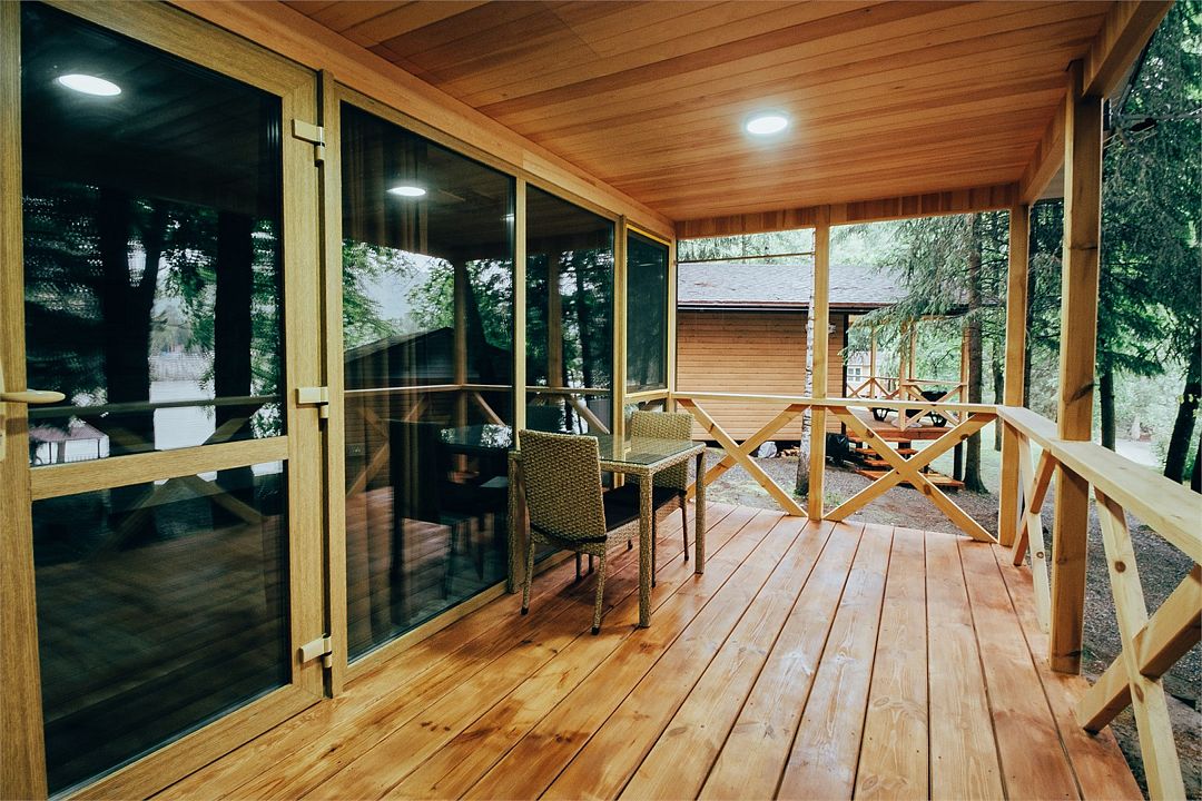 телевизор, фен, обогреватель, душевая кабина, санузел, водонагреватель, халаты, банные полотенца, тапочки, гигиенические средства, терраса, двуспальная кровать, диван, стулья, гардеробная, две комнаты, чайный набор, унитаз, раковина, вид на реку, стол, панорамные окна, мини-холодильник, москитная сетка, чайная станция, вешалки-плечики, веранда, мыло, прачечная (за дополнительную плату), без питомцевВ домике