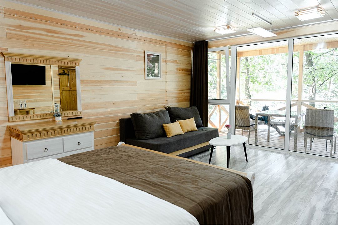 телевизор, холодильник, фен, плита для приготовления пищи, микроволновая печь, душевая кабина, водонагреватель, банные полотенца, терраса, двуспальная кровать, гардеробная, чайник, унитаз, раковина, вид на реку, кухонная посуда, столовые приборы, панорамные окна, раскладной диван, кухонный уголок, вешалки-плечики, веранда, можно с питомцамиВ гостиничном номере