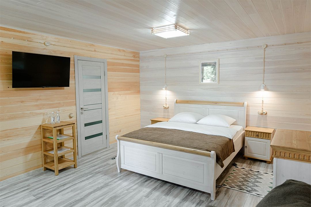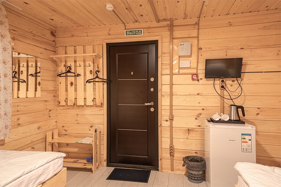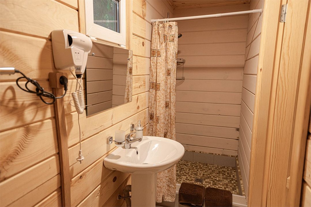 телевизор, светильник, фен, обогреватель, душевая кабина, санузел, банные полотенца, две односпальные кровати, унитаз, раковина, стул, мини-холодильник, чайная станция, вешалки-плечики, можно с питомцамиВ домике