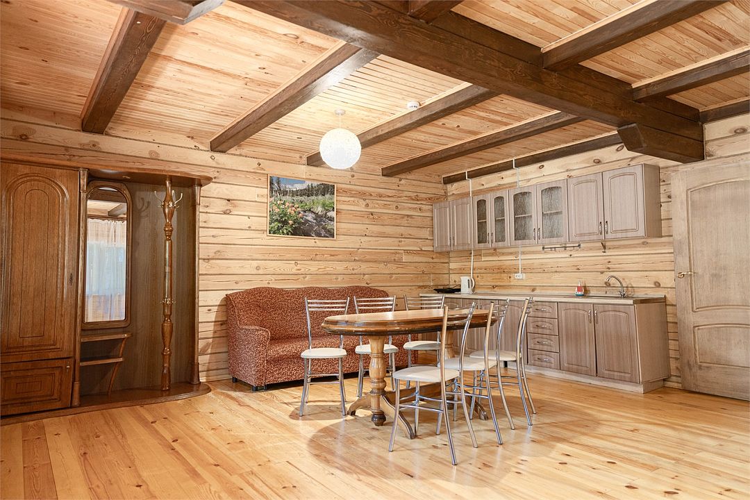 Благоустроенный двухэтажный коттедж , 4 номера с двуспальными кроватями, гостиная с кухонной зоной. Балкон и веранда с видом на Катунь.Услуги и удобства