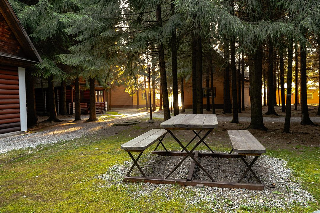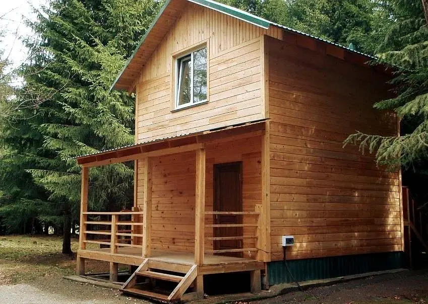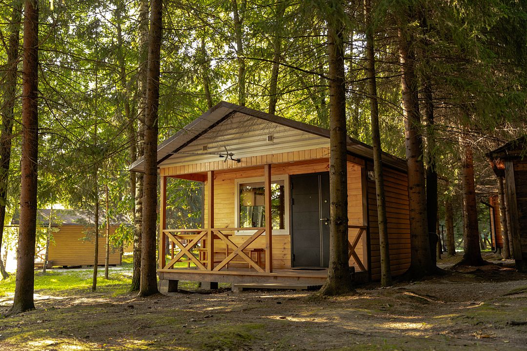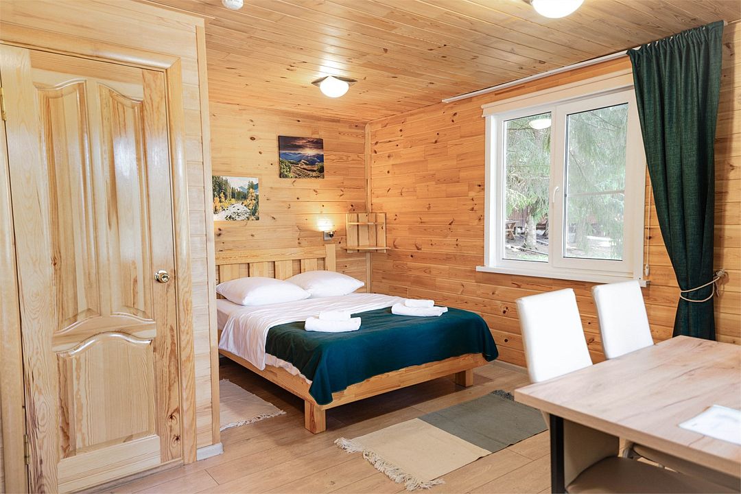 Благоустроенные домики с двуспальной кроватью. Небольшая веранда со столом и стульями.Услуги и удобства