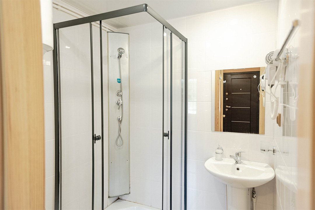 телевизор, светильник, фен, душевая кабина, санузел, банные полотенца, двуспальная кровать, две односпальные кровати, стулья, унитаз, раковина, отдельный вход в номер, стол, мини-холодильник, чайная станция, услуги прачечной (платно), вешалки-плечики, можно с питомцамиВ номере