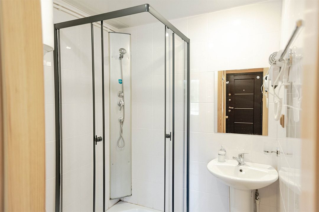 телевизор, светильник, фен, душевая кабина, санузел, теплый пол, банные полотенца, двуспальная кровать, две односпальные кровати, стулья, унитаз, раковина, отдельный вход в номер, стол, мини-холодильник, чайная станция, услуги прачечной (платно), вешалки-плечики, можно с питомцамиВ гостиничном номере