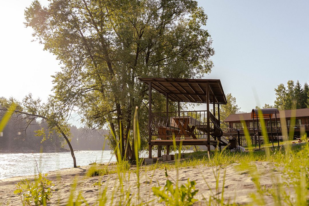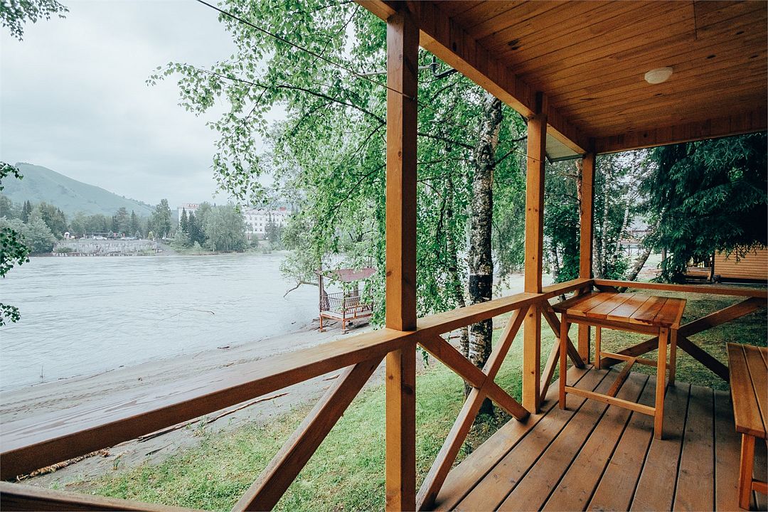 Благоустроенные домики с двуспальной кроватью, верандой и видом на Катунь.Услуги и удобства