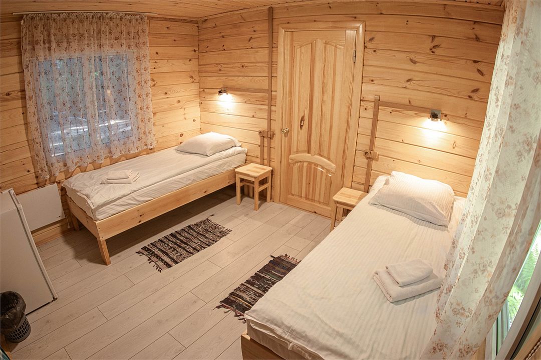 Благоустроенные домики с 2 односпальными кроватями, холодильником, телевизором, чайной станцией.Услуги и удобства