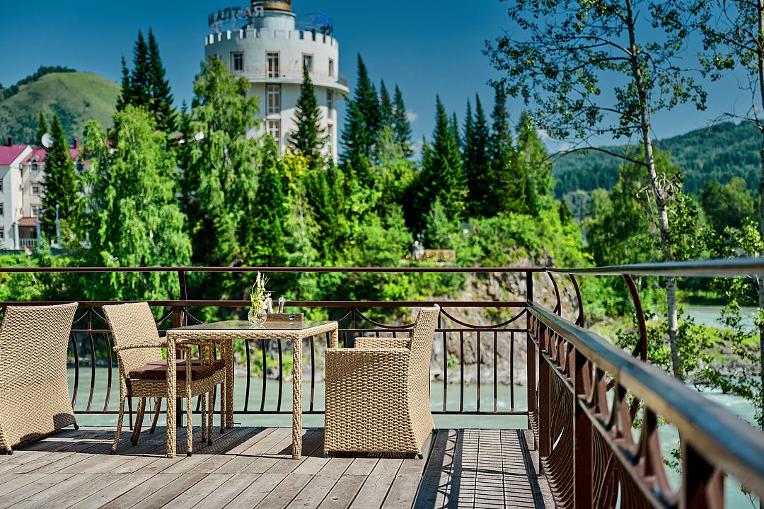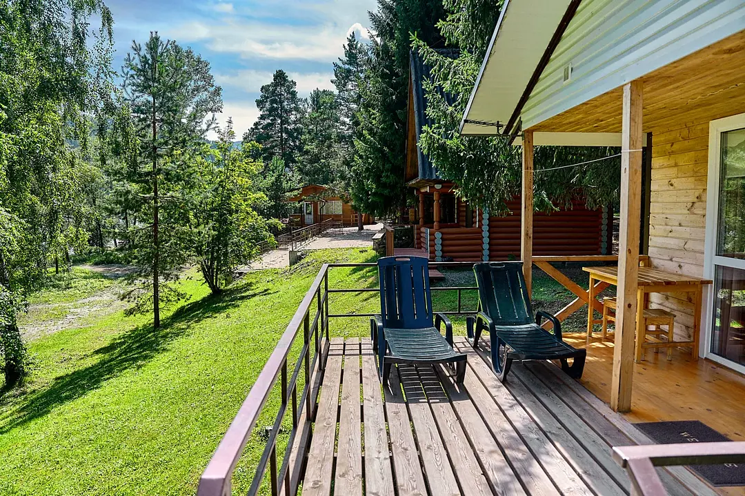 Благоустроенные домики с двуспальной кроватью, террасой с шезлонгами и видом на Катунь.Услуги и удобства