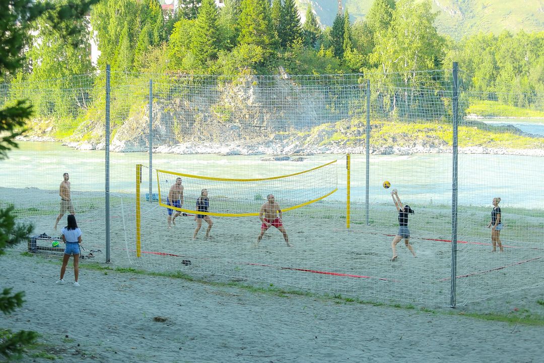 На берегу Катуни открылась площадка для игры в пляжный волейбол. Мяч для игры предоставляется в аренду: 500 ₽ / 2 часа. Поиграть в волейбол могут все желающие.