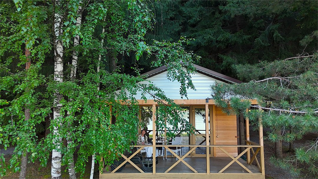 телевизор, светильник, фен, обогреватель, душевая кабина, санузел, банные полотенца, двуспальная кровать, стулья, унитаз, раковина, вид на реку, стол, мини-холодильник, чайная станция, услуги прачечной (платно), вешалки-плечики, веранда, можно с питомцамиВ домике