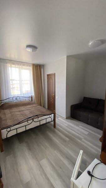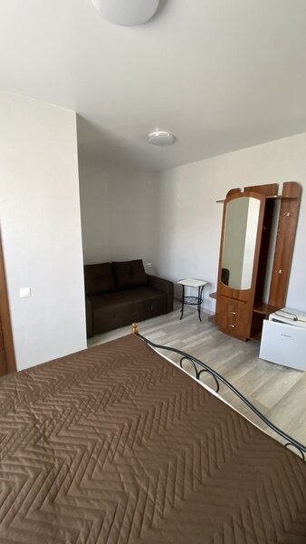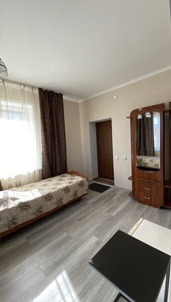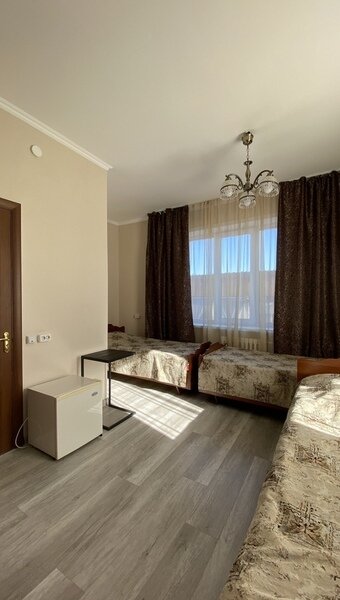 В номере: односпальная кровать, кресло-кровать, столик журнальный, мини-холодильник.