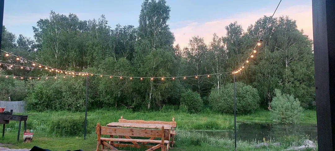Семейный отдыхДостоинстваЕсли вы устали от городской суеты и вам нужно отдохнуть, то это отличное место. Территория очень большая, на территории имеется душ. В деревянных домах есть камин, они могут вместить до четырех человек. Летом можно порыбачить и выловить разнообразные виды рыбы.