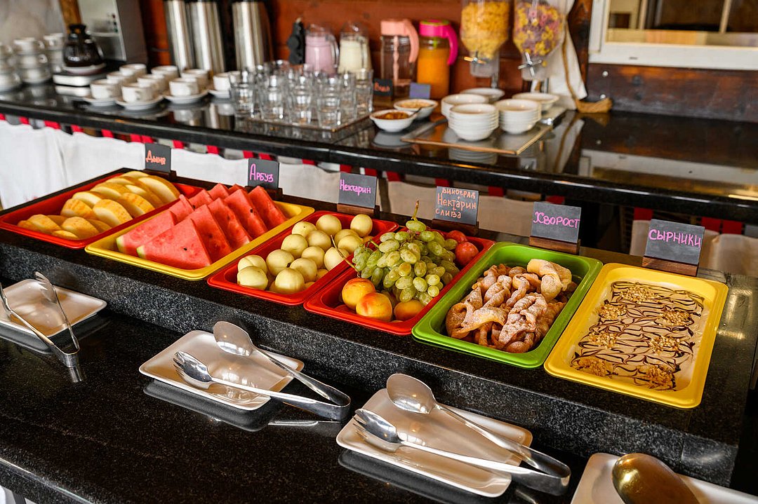 В период низкого сезона завтрак «шведский стол» включен в стоимость проживания, дополнительно, обязательно оплачивается ужин «шведский стол» 1500 ₽ с человека.