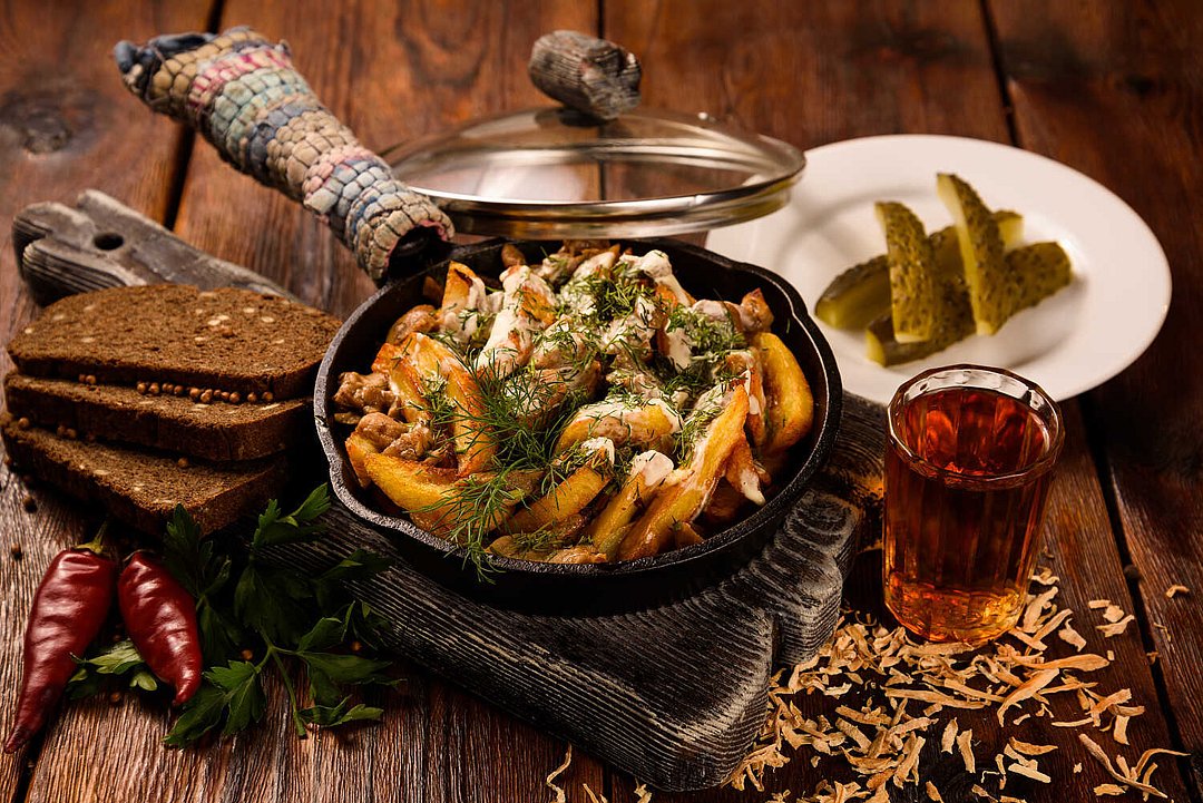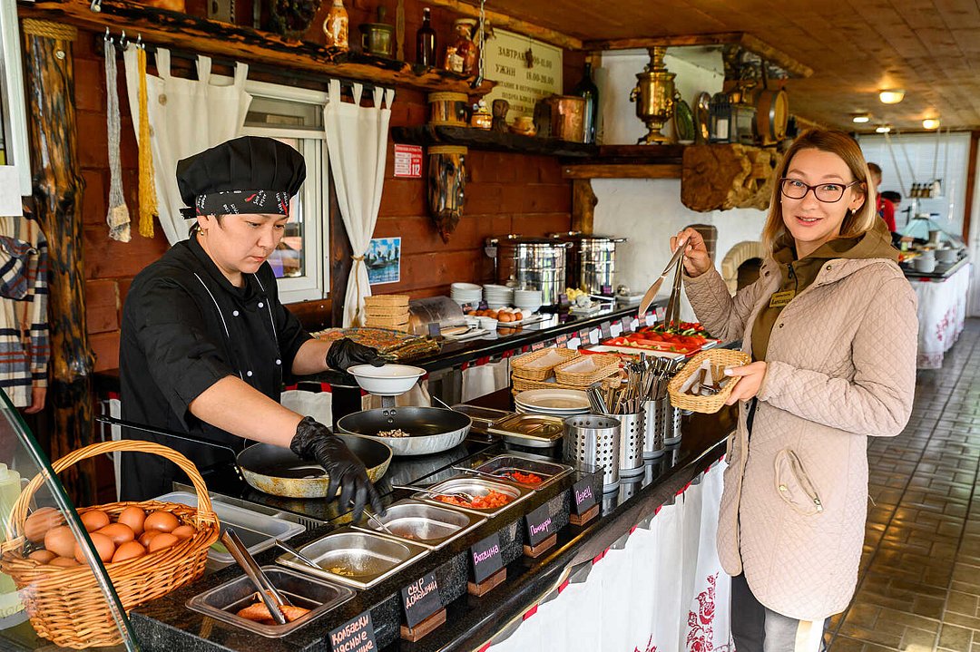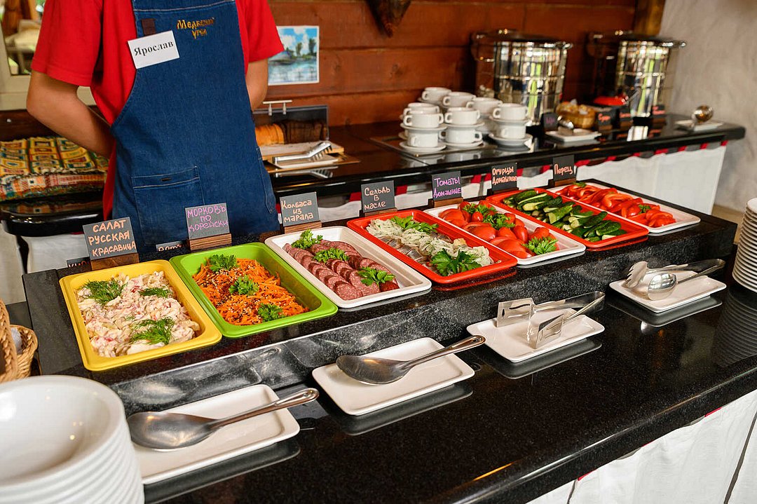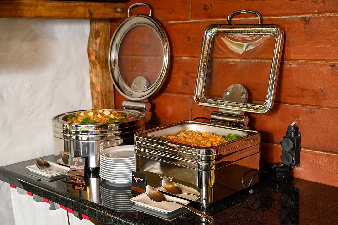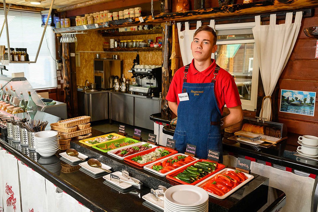 На базе работает кафе с русской кухней, удобное для проведение праздников, торжеств, дней рождения.