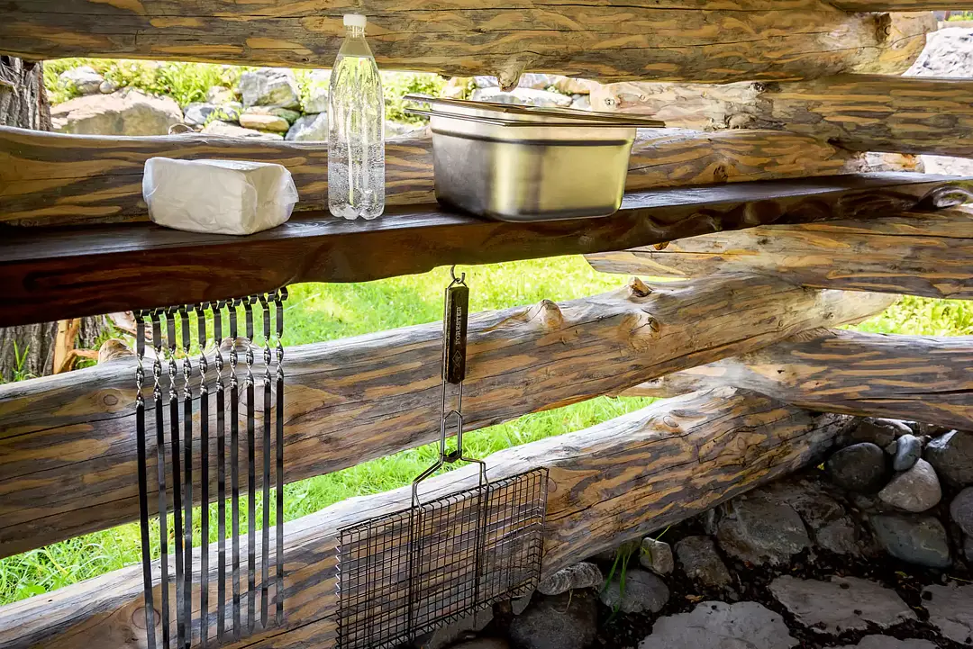 Приготовление шашлыка в оборудованных беседках на берегу Катуни
