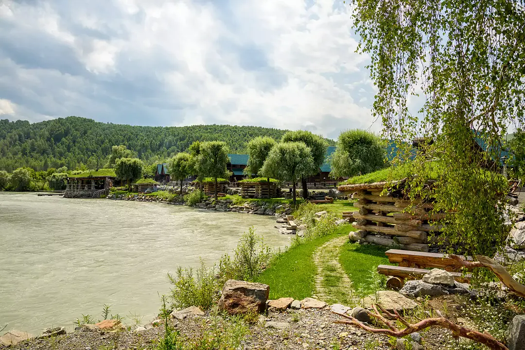 Номера «Люкс» - двухуровневые коттеджи, построенные из натурального кедра в нескольких метрах от Катуни.