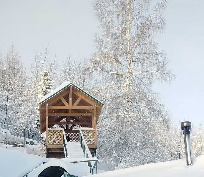 На горе, под небом стоит прекрасная Беседка, в которой можно насладиться природными пейзажами. Или попить травяной чай или кофе!