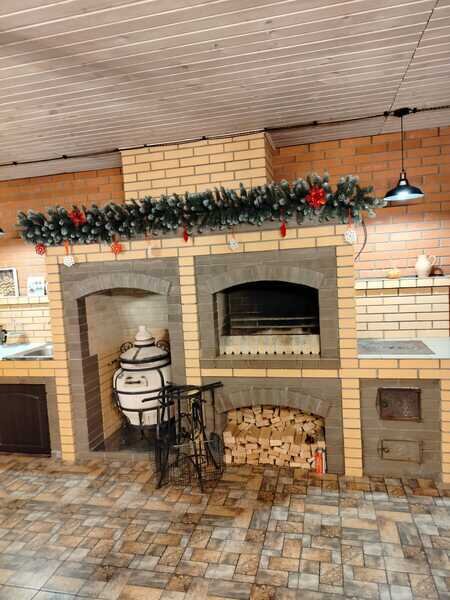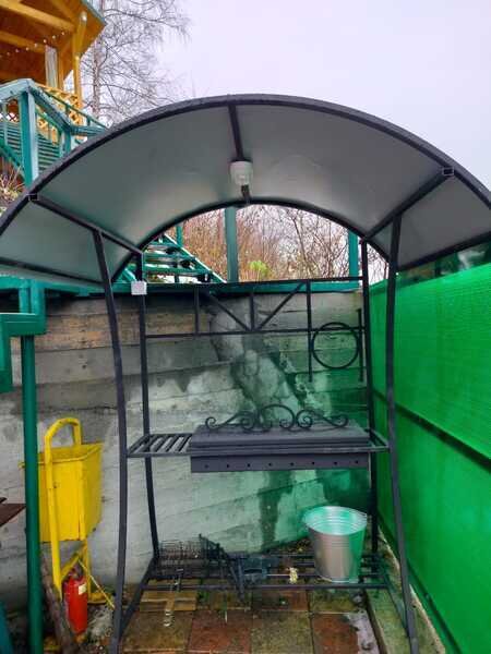 Есть мангал для приготовления шашлыков, решётки.