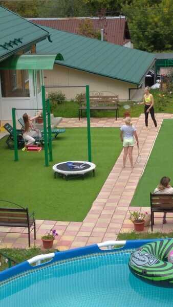 Также на территории есть зоны с искусственным газом для занятия йогой, зарядки и на которых можно позагорать.